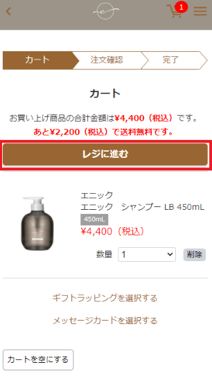 注文数量の変更や商品を削除する場合は、カート画面で行います。