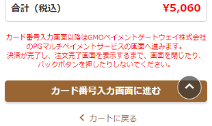 「カード番号入力画面に進む」ボタンを押すと、クレジットカード決済の手続き画面に進みます。